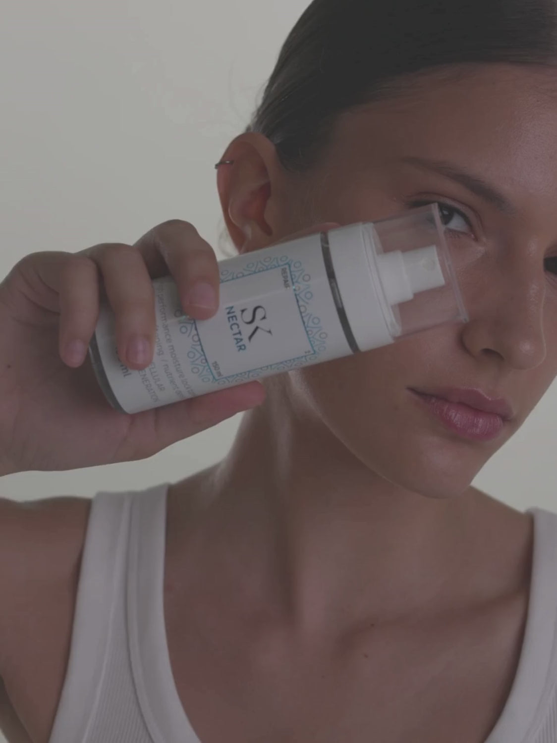 Po temeljitem čiščenju obraza usmerite Nectar proti obrazu in nanesite minimalno 3, najbolje pa 6 pritiskov izdelka. Takoj nadaljujte s svojo priljubljeno nego serumov in krem.