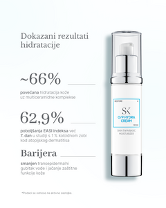 O/P HYDRA je vlažilna biomimetična krema, ki vsebuje raznovrstne učinkovine, kot so ceramidni predhodniki in ceramidi, glicerini, oves in pantenol. Krema je bogatejša in bolj kremasta naslednica najbolj priljubljene serumske emulzije za napredno hidracijo - Hydra B. Izdelana je bila posebej za suho, hrapavo in dehidrirano kožo, saj jo vlaži in mehča ter obnavlja njej sijaj v enem samem preprostem koraku.